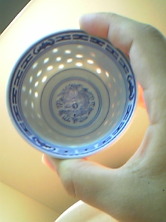 職場で貰った中国湯のみ。蛍というらしい。水玉に透かしが入っているのです。すげー。